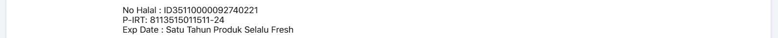 Kami juga berharap Anda bisa menambahkan beberapa informasi mengenai tempat penyimpanan produk yang ideal seperti masa simpan suhu ruang atau masa simpan suhu kulkas (dengan penambahan informasi berapa derajat suhu penyimpanan jika dibutuhkan).